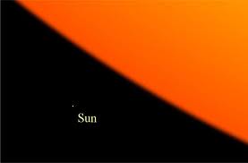 Our sun in comparison to just a small section of this enormousstar. If you were to carry it out past the edge of the screen, you'd