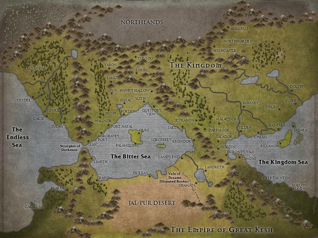 This is a map of Midkemia, Raymond E.Feist's book world. I have a suspicion that it's also his gaming worldfor a D&D game (or one definitely inspired from D&D). Someone with a mind like Feist probably home-breweda world much more unique that required a deviation from the standard Dungeons & Dragons worlds thatthey provide to us plebes.I've been reading the Raymond E. Feist fantasy novels (of which there are about thirty), and I'm having an odd bit of fun doing so. Why odd you say? Well they read like a really thoughtful and well-plotted Dungeons and Dragons game. I'm serious. They're a much different breed of fantasy literature. High brow they are not, but thick and pulpy with well crafted villains and recurring characters they most certainly are, and the magic system comes straight out of a Dungeons and Dragons rulebook albeit with a few changes for copyright reasons.A little research also confirmed my theory. Raymond E. Feist had a D&D group that met weekly. I can only imagine that the characters I'm reading about were played by people around the table, and the stories (which are pretty great) were probably adventures that they went on as a group. As I'm reading, I think to myself, "Okay that is the rogue in the party, definitely the magic-user, who's the tank? Oh...that's this one."