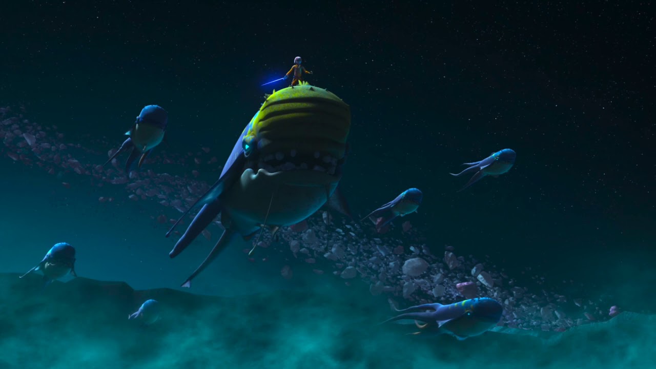 4) I like the Purrgil. These are a species of massive, whale-like creatures that lived in deep space, traveling from star system to star system. They have a natural ability to fly through hyperspace. Again, this may be another thing that the movies may shy away from because of its ridiculousness. But once you get past any objection you might have of whales flying in space, they are actually pretty darn cool, especially if you get to ride one like Ezra Bridger did.