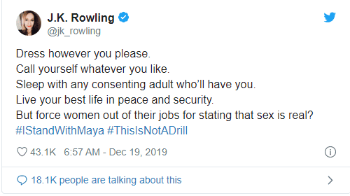 The "Maya" in the tweet refers to Maya Forstater, who tweeted such things as "men cannot change into women," and "it's unfair and unsafe for trans women to compete in women's sports."