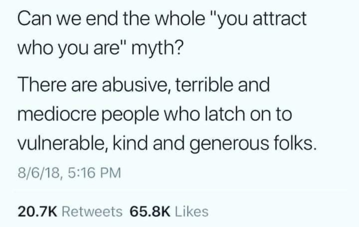 This meme appeared on my Facebook yesterday from a friend who shared it from the Utah Harm Reduction coalition. A bunch of people liked it and passed it on, but I don't think people actually "read" it or even know what "mediocre" means. The word "mediocre" just means "ordinary." So this meme is suggesting that vulnerable, kind, and generous folks are "extraordinary" and that attracting "ordinary folk" is a toxic burden. It was the most pretentious thing I've read in some time. Why do I use the word "pretentious?" Allow me to explain.First, you should know that I consider myself to be an ordinary person, and I can tell that whomever wrote this meme is (in Southern language) "putting on airs." In other words, they think they are better than me, and I'm like...whaaattt? Did you not get the memo that being vulnerable, kind, and generous does not make you extraordinary? There's lots of people who are vulnerable, kind, and generous. I work with hundreds of people who define this every day. There are millions and millions of people who are vulnerable, kind, and generous. The antithesis of this, psychopaths, make up around 4% of the population (I got this statistic from a book called The Sociopath Next Door). This means that 96% of the population of the United States could probably be said to be at least "kind" and "generous." Charity is huge here. So what the hell is going on? Why does someone who wrote this meme think this qualifies as extraordinary? Why is "mediocre" lumped in with the words "abusive" and "terrible?"