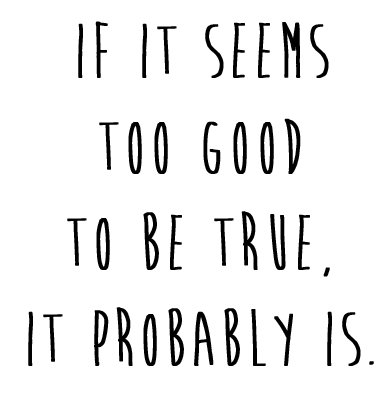 Why am I the only one who takes to heart the phrase "If it seems too good to be true it probably is?"