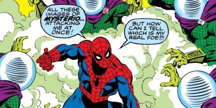 There are some spoilers in this post for Spider-Man: Far From Home.I've been surfing some of the discussion zones for Spider-Man: Far From Home, and some people are doubting that Mysterio could do all the things that he does, even with Stark technology. Here's one such comment: