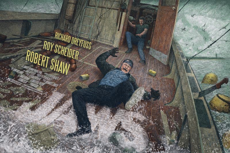 What are the elements at play in the above illustration? Well Quint is sliding to his doom. If I wanted to capture this in a scene, I'd try to write it from the point of view of the monster, which I think is just as relevant.Essentially, what I'm saying about my own writing is that I want each scene to carry more weight with fewer words. I suppose that is my goal.