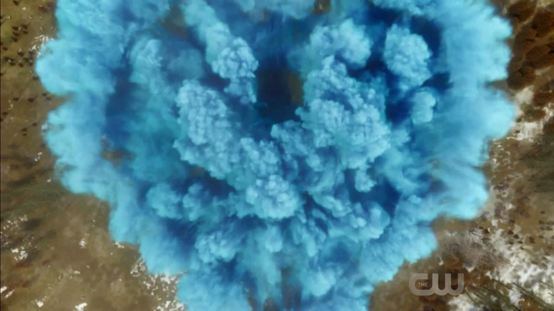 "Beebo Hungryyyy. I La-La-Love You!" Yes, Cuddle Me Beebo (whom we saw near the beginning of this season being worshiped as a god) finally defeats Malice, the huge D&D demon-thing (note that everyone has been mispronouncing this demon's name as "Mollus" and who Mick has been calling "Phallus). Also note that it is Malice that corrects their pronunciation of his own name. It's funnier when the villain demon thing is so bothered by it that he corrects them before fighting them. When Beebo wrestles Malice and defeats him with a huge body slam from the sky. Malice is gone and Beebo explodes into a blue heart of pure awesomeness leaving a crater and the Legends behind. This is how all season finales need to end, in blue hearts.