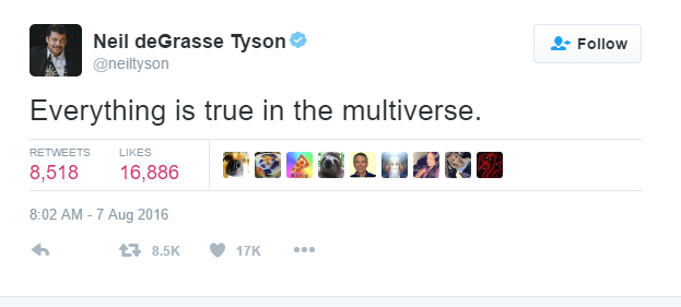 Neil deGrasse Tyson tweeted that everything is true in the multiverse this weekend.