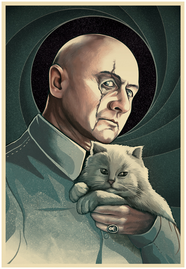 A portrait of the Bond Villain "Blofield" by the artist Muti. Blofield was the head of S.P.E.C.T.R.E. (oneof my favorite villains in the franchise). He always had a white cat and was destroyed in the beginning