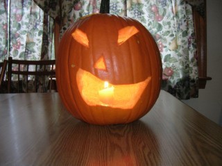 My son's pumpkin. Boo!Happy Halloween!