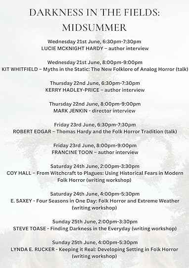 On Sunday, June 25, I’ll be teaching a workshop called Keeping it Real: Developing Setting in Folk Horror online as part of the Darkness in the Fields: Midsummer folk horror festival. You can get tickets to the entire event, workshops, interviews, or single days. My workshop runs from 4-5:30 pm BST/11 am -12:30 pm EST/ 8am-9:30 am PST.