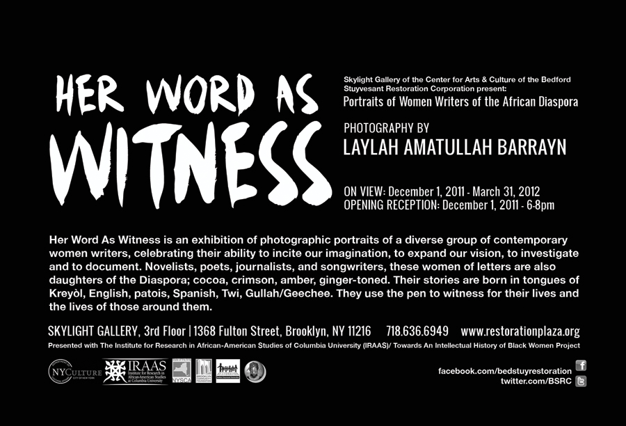 HER WORD AS WITNESS Q&A with Sharifa Rhodes-Pitts (she wrote the NY Times-lauded Harlem is Nowhere) and me; moderated by Marva Allen.