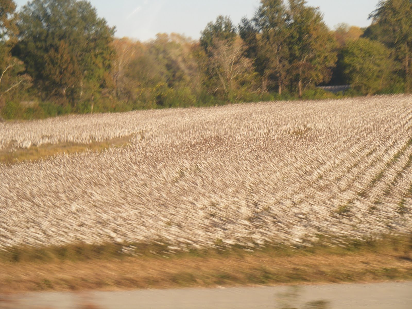 The following day, I was the one chomping my chili and rice loudly as my seat mate expressed regret at not packing a snack. He grew up on a farm so he became my unofficial eco-tour guide, pointing out tree types and explaining water tables and patiently letting me lean over him to catch a shot of the cotton fields that were whirring by. The cotton looked like marshmallows! So fluffy and white standing on those straw-brown stalks. I got chills imagining great-great-great cousins and aunties and uncles plucking the white blossoms, marsh and swamp nearby...