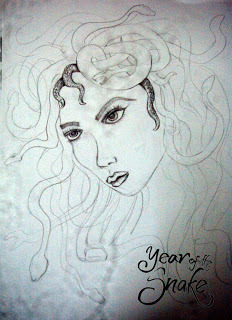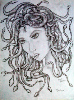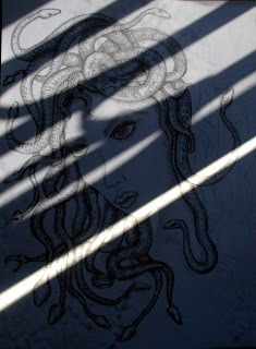 I was finishing off the last few snakes when the sun crept in through the window. I thought it made the Gorgon look more terrifying.