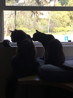 I am given to understand that pictures of cats suffice for actual content. I would produce actual content, see, but there are book revisions happening for How Rory Thorne Destroyed the Multiverse, which is coming out in October, and which is engaging all of my word-production except for professionally required comments on student writing and letters of recommendation.So here: Murdercat and Tinycat, enjoying a rare day of sunlight in this otherwise rainy winter (which is fine by me, this rain, except when I have to drive in it. The other drivers are dangerous, and also the engineers who designed street drainage were not especially skilled, and the car is not a goddamned longboat.) There are two complete cats in this photo, I promise.