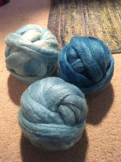 My summer awaits. The amazing M, she who has so much fiber her husband does this little cheer when she gives it away to me (she's an indie-dyer, among her many talents, and she's always trying stuff out), has given me blue balls merino, so it'll felt, which is good because I'm going to ply it with some BFL which doesn't like felting and make carpets. Anyway. Each of those balls is about 8 oz, or half a pound, and Arachne knows how much it'll spin out, but I bet it'll be enough to get me through season 3 Poldark for sure. And then there's the 4-5 pairs of socks to be done by Christmas. I will be busy! I will be productive! I will be able to let my brain (and spirit) rest!