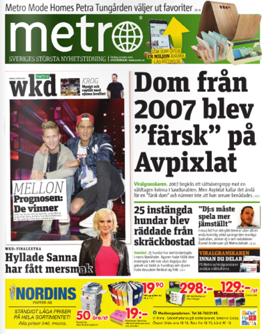 Går det verkligen att motivera en sådan nyhetsvärdering? “Nyheten” dominerar Metros etta samt den första nyhetssidan inne i tidningen. Vad saken gäller? Att den ökända rasistbloggen Avpixlat har gjort ett formellt faktafel när de i ett av sina blogginlägg återrapporterade en uppgift som visade sig vara flera år gammal, utan att påpeka dess ålder. Bloggposten handlade om ett av otaliga övergrepp i Saudiarabien och verkar för en gångs skull inte ha kryddats med rasistiska gliringar. Men där fanns alltså ett faktafel, som blåstes upp något enormt i Metro.