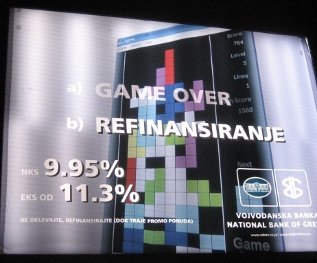 Strax innan finanskrisen bröt ut, på våren 2008, rapporterade Copyriot från Belgrad att stadsbilden dominerades av bankreklam: “Västeuropeiska banker i stort antal konkurrerar om att få skuldsätta serberna. Främst kanske tyska och österrikiska, men alla andra stora kontinentaleuropeiska länders banker håller sig framme.”