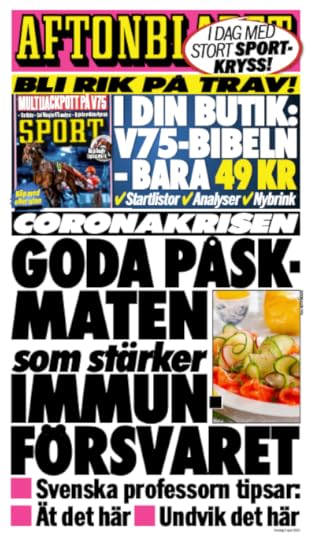 Kvällspressen lockar med påskrecept, som den troligen gör varje skärtorsdag. Allt är som vanligt förutom att recepten återfinns under en ny vinjett: “CORONAKRISEN”.