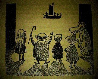 Jag måste gå ut, tänkte Snusmumriken. Det är värre att tänka på dem än att vara med dem. Och vad de är olika muminfamiljen … Helt plötsligt, oväntat, saknade han familjen. De var också besvärliga. De ville prata. De fanns överallt. Men med dem kunde man vara ensam. Hur var de sig åt egentligen? undrade Snusmumriken förvånad. Hur är det möjligt att jag kunde vara tillsammans med dem under alla långa somrar utan att nånsin märka att de lät mig vara allena?