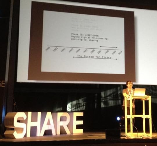 Folk hörde liksom mig prata om framtiden, när allt jag försökte göra var att prata om historien. Närmare bestämt inledde jag med att tala om hur Piratbyrån “förlorade”, för att sedan fortsätta med hur Piratbyrån har kopierats och hur Piratbyrån förtjänar att kopieras i den historiska situation som vi befinner oss idag. Kopiering är ju att kasta saker in i framtiden. Då är det kanske inte så konstigt att kopimistisk historieskrivning blir till framtidsforskning, eller vad man ska säga.
