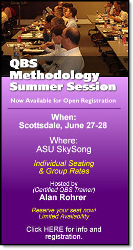 Mark your calendars with regard to the next open-enrollment class which will take place in Atlanta on Thursday and Friday, October 3rd and 4th. These sessions tend to fill up quickly and will be officially announced in the mid-August QBS newsletter, so you’ll want to be sure and save the date.
