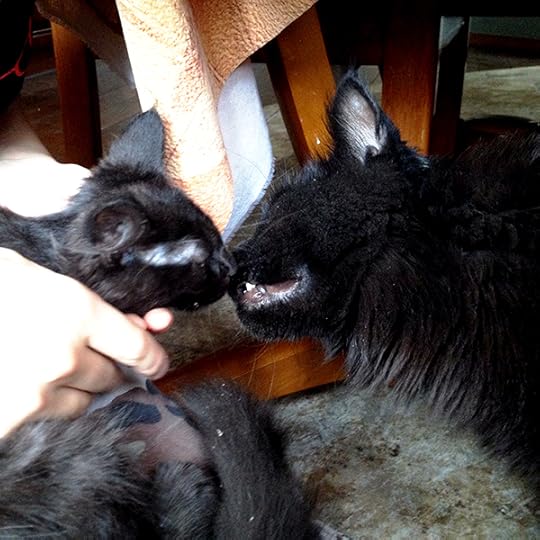 3 месяца. Приехал в дом. Знакомство со старшим котом.