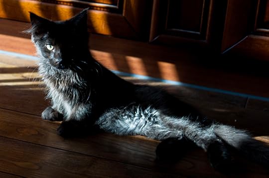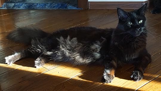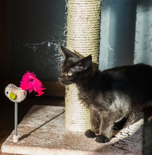 1 год и 4 месяца. Живет на балконе, охотится на оленью шкуру. Уж больно она подозрительная.