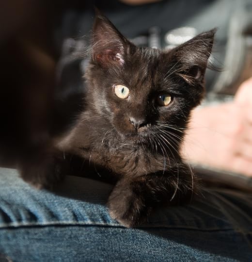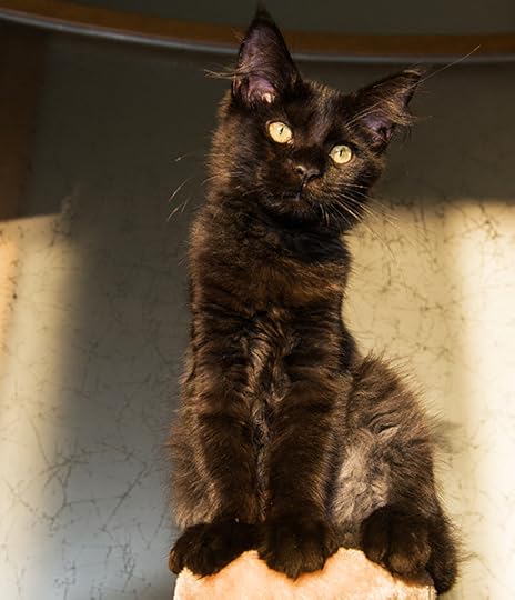 1 год. Крупная зверина. Но все еще котенок. Куны растут куда дольше обычных котов. В том числе и психологически. Обожает лазать по плечам, рукам, лежать на шее и ездить на хозяевах.