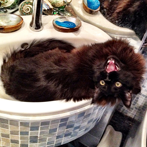 Нечто мокрое, несуразное, похожее на мелкого тявкающего щенка, но никак не на кота. :)