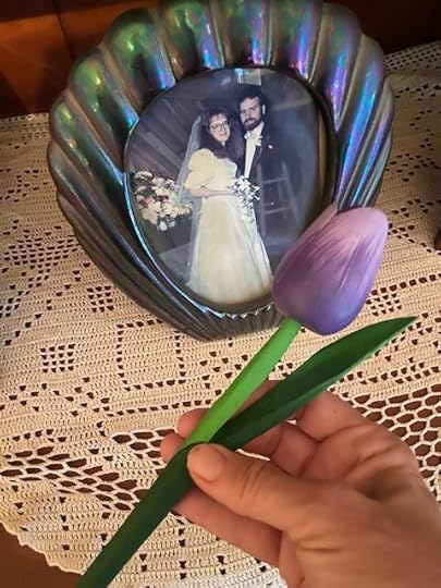 A wooden tulip from the Netherlands graces the author’s wedding photo People at times still wear wooden clogs, and the clogs are featured in the Sinterklaas festival every December where children leave food in the clogs for Sinterklaas’s horse and receive gifts in return. Tulips themselves are iconic symbols of Holland with vast fields of color that bloom every May.