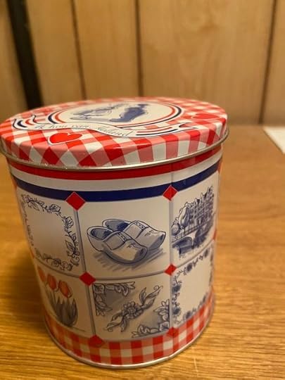 Life by the windmills, as depicted on this delftware in the shape of a pearThen of course there are the sweets of Dutch life including stroopwafels which this unique tin contained.
