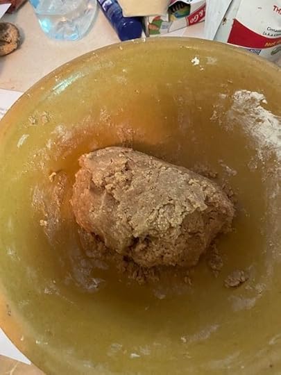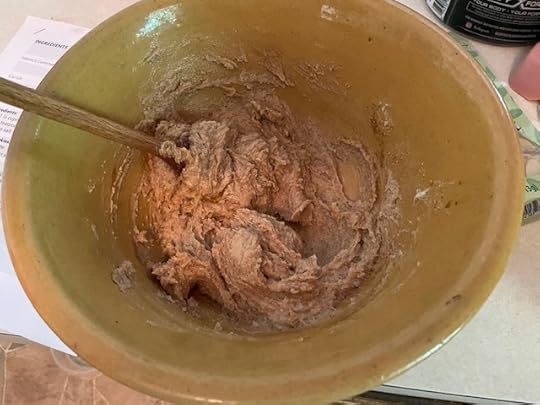 Creaming the first ingredients. The color is because I substituted the sugar for a mix of cane syrup crystals and coconut sugar.