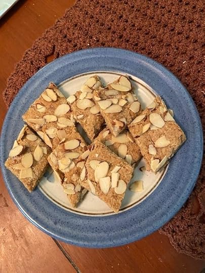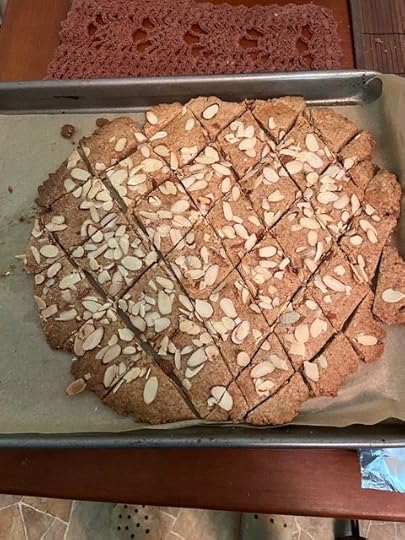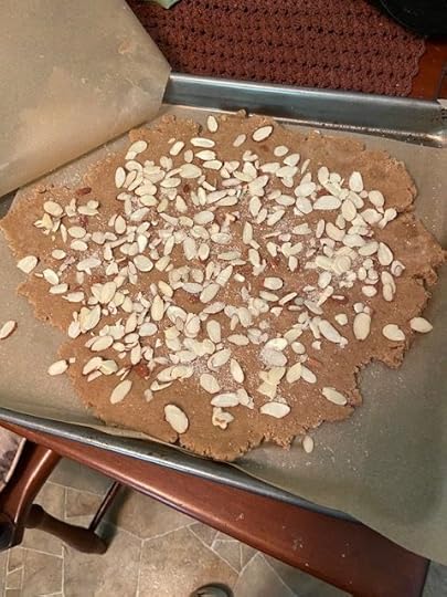 As part of the online Facebook gathering for the release of Escape from Amsterdam, the author made a Dutch Christmas butter cookie in the shape of diamonds. The delightful cinnamon flavor and pretty decoration with sliced almonds and an egg wash gleam will look great for any occasion. Dutch cookies like this are favorites during “Pakesjavond” or the exchanging of gifts and during the arrival of Sinterklass when his assistants toss cookies to the eager children. Enjoy making and eating a Dutch cookie with loved ones. Check out the author notes at the end to see the variation used in this recipe.