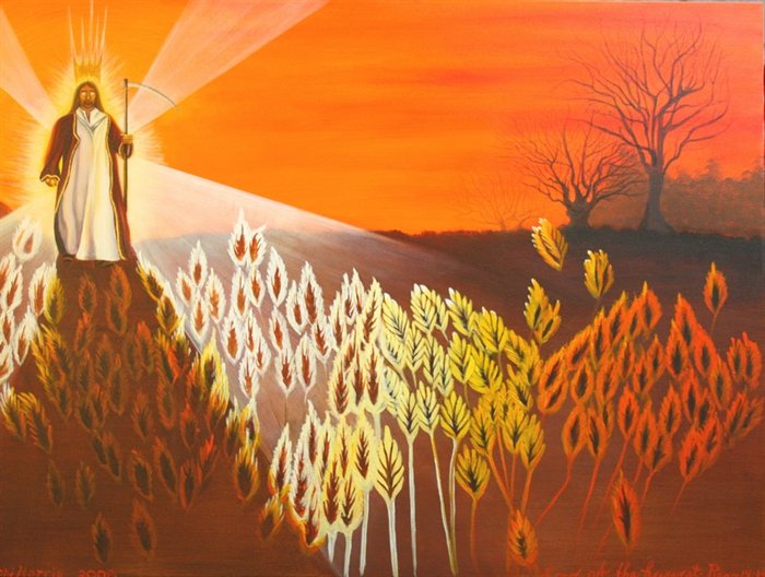 Revelation 14:14-15 tells us, "And I looked, and behold, a white cloud, and on the cloud sat One like the Son of Man, having on His head a golden crown, and in His hand a sharp sickle. And another angel came out of the temple, crying with a loud voice to Him who sat on the cloud, 'Thrust in Your sickle and reap, for the time has come for You to reap, for the harvest of the earth is ripe."
