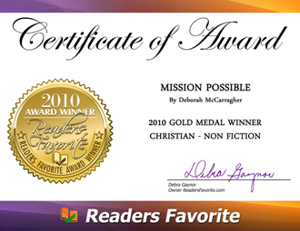 It is with a humble heart and much gratitude that I announce my first Book Award. "Mission Possible" has been awarded the 2010 Gold Award Winner for Best Christian Non-Fiction Book.