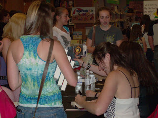 I also stopped by Book People in Austin and watched fondly as pre-teen and teenaged girls fawned over the 5 authors of the Young Adult Fiction Dark Days tour. After over a year of corresponding through Facebook and blogging, I finally met Amy Plum, YA author. I snapped a few pics of her adoring fans: