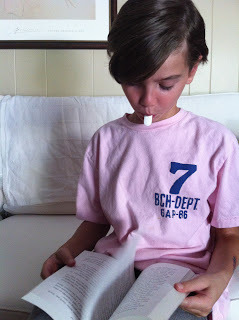 Instead of posting pictures and funny stories here, I'm proofreading my 9-year-old son's blog, which he keeps every time we visit family here. It takes him about 2 hours to type it, holding my laptop hostage. But I am catching up on novels that have been on my to-read list.