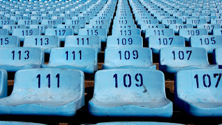 THE SWEEPER HOLDS OUT HIS HAND TO THE BOY. THE BOY STEPS DOWN OFF THE BLEACHERS AND SITS BEFORE THE SWEEPER, IN A SMALL PILE OF POPCORN BOXES, PENNANTS, FALLEN BALLOONS, ETC.