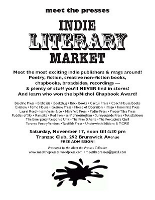 Indie Literary Market & bpNichol Chapbook Award: Toronto, November 17