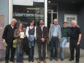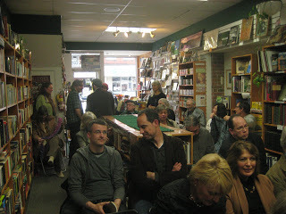 Yesterday, we kicked off the Mansfield-and-Stuart Ontario launch tour at Green Heron Books, in Paris, Ontario, the home of poet and small-press legend Nelson Ball. I was expecting a tiny crowd and a warm little event, but the store was packed and tons of books sold.