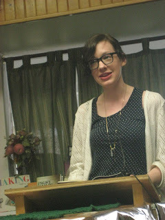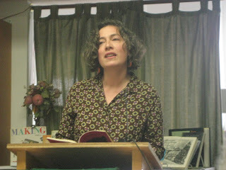 Alice Burdick, who, like Jaime, came in for this week's launches all the way from Nova Scotia, read next, from her third full collection, Holler. I love Alice's challenging work on the page, but she's one of those poets, like John Ashbery, who seems to show you a really beautiful way through her work as she reads. She ended off with the book's last poem, "Body House," and when she read the title aloud, she laughed: she hadn't ever noticed the pun.