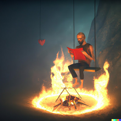 April 19, 2022. 11:35 am. A pile of calendars, datebooks and diaries heaped in the middle of the yard. A red gasoline tank. Gas poured. A match lit. The huge, the huge conflagration of everything that has happened. Also, because represented in the burning heap were days, weeks, months and years that were yet to happen, they too are gone, turned to fire, heat, ash, crackling. My face flushed. Clouds puffy in the sky. The sound of traffic on a nearby road. Angels. Trampolines. Dust.