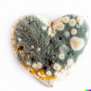 I've been collaborating with Swiss composer and artist Tobias Reber. One of the strains of his work is to generate AI images which are an intigruing blend of the organic in nonorganic spaces. His work has a dreamlike intensity, if your dreams were filled with mold, lichen, moss, art galleries and wooden doors. He asked the question about aestheticizing catastrophe and so I began to speculate about that in this poem.