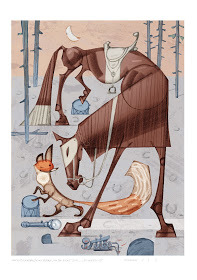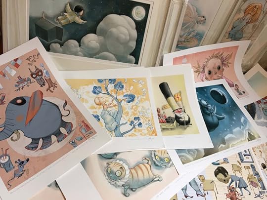 Summary in English: Original art work and signed A2-size giclée prints of picture book illustrations by Svein Nyhus' for sale at an exhibition in Lillehammer, Norway May 31—June 11, 2017.