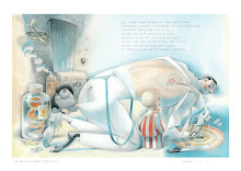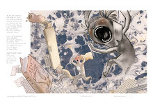 (papiret måler 59,4 x 42 cm). På flere av bildene er teksten fra bøkene skrevet inn.