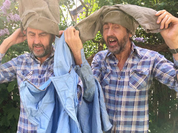 Svein og Egil Nyhus, tvillinger og tegnere, priste nylig sommer og sol med gamle skatter fra klesskapet: snekkerbuksene fra da de var tre, himmelblå vårjakker fra fjerdeklasse og konfirmasjonbuksene fra 1976! Losluene har de arva etter faren sin.