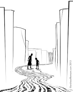 For the cover , I decided to create a silhouette that has a 3-dimensional quality to it, leading into the painted image in the background. I thought this would be a nice hint at the fact that this time Kara and Taff would actually traverse into a world of paper.