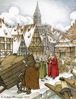 My new christmas book for Kindler publishing house is in stores now! This time I illustrated a story by Astrid Fritz, which takes place in Strassburg in the year 1538.