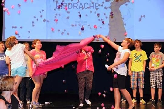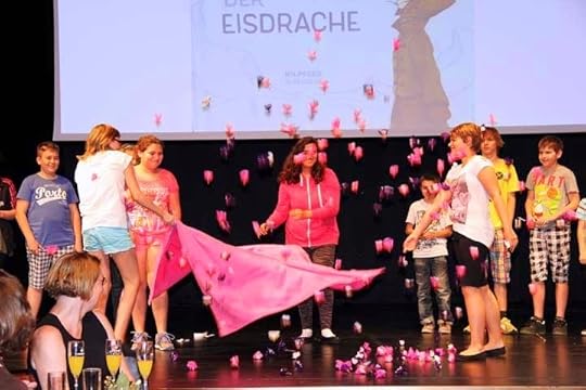 Letzte Woche fand in Eisenstadt, einer wunderschönen Stadt im Burgenland, die Preisverleihung statt, auf der auch der Preis der Jugendjury verkündet wurde. Ich war sprachlos, als die Mitglieder der Jugendjury, begleitet von einem Blütenregen selbstgemachter Papierblumen, den Preis an den Eisdrachen vergaben!