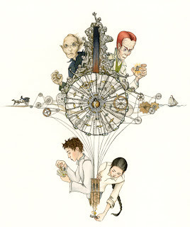 "The Kairos Mechanism" continues the story of Natalie, gives clues as to what might happen next, and a bit of background history to some of the mysterious characters we already met in The Boneshaker. Kate funded the writing, illustrating and printing of the book through a Kickstarter campaign, and it will be available exclusively through her website and on Espresso Book Machines throughout the US. Here's an excerpt from the summary from Goodreads: