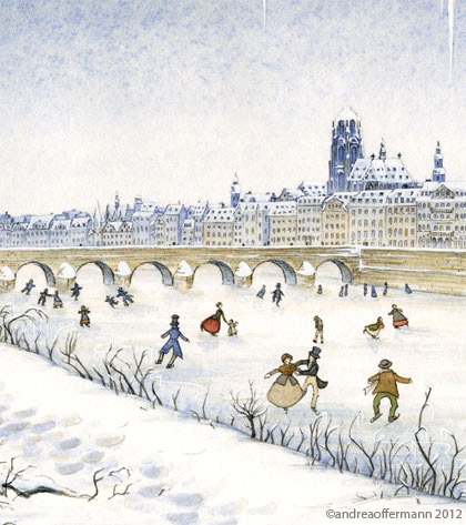 Dieses Jahr habe ich wieder für den Kinder-Verlag ein Weihnachtsbuch illustrieren dürfen. Geschrieben von Ruth Berger, spielt die historische Geschichte diesmal in Frankfurt, im "Eiswinter" 1844: